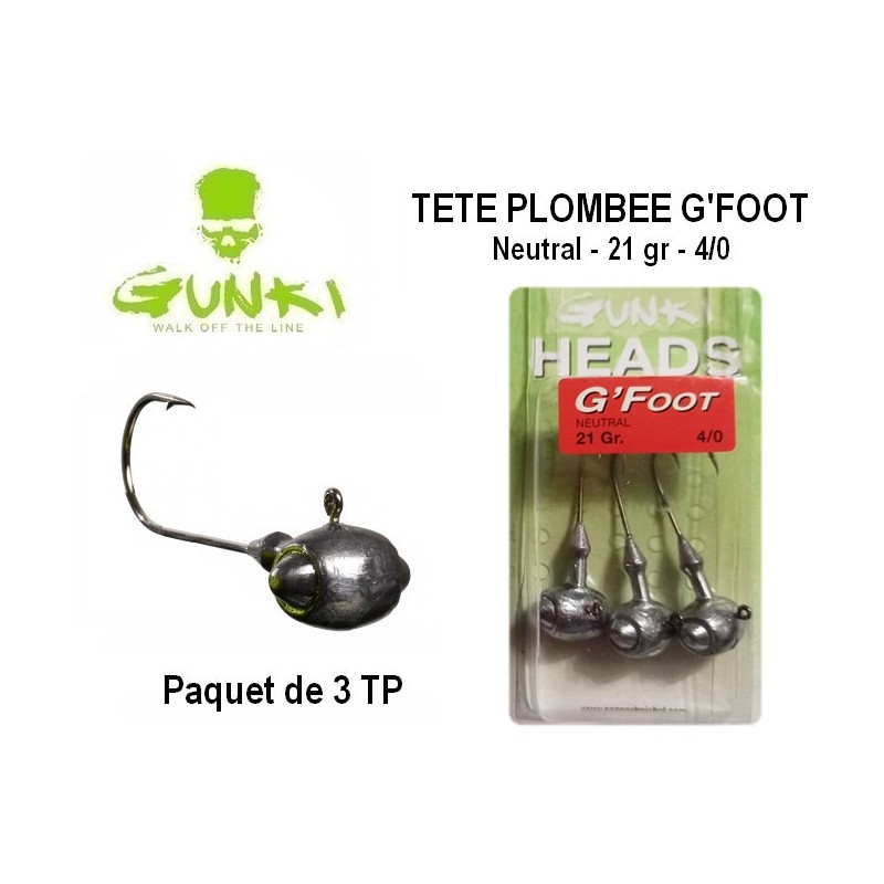 La Tête Plombée G'Foot de la marque Gunki est une TP de type « football » qui possède un design particulier facilitant l’écoulement de l’eau sur les côtés.