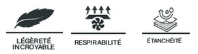 Grâce à son tissu combiné à une membrane 3 couches, elle est d’une extrême légèreté.